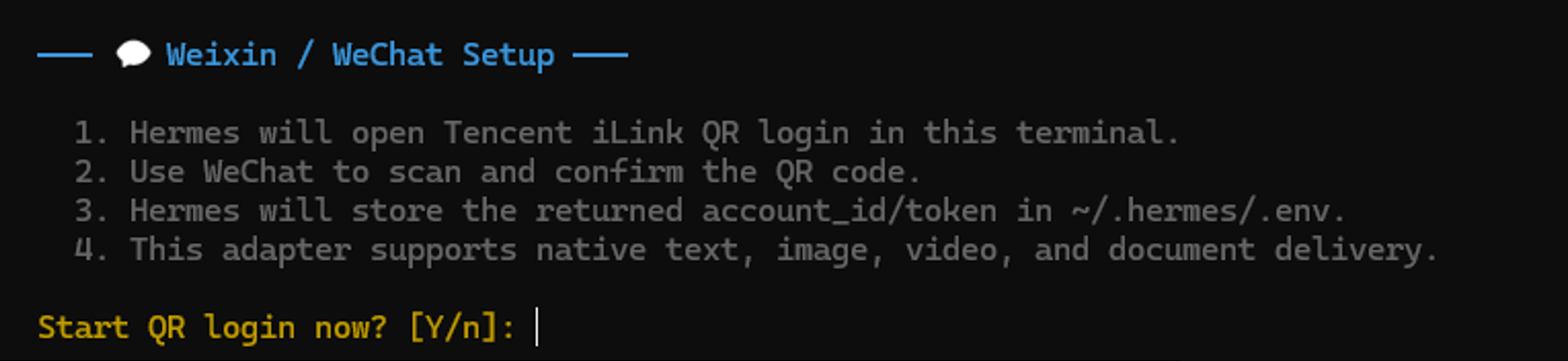 继续选择和 Hermes 的聊天工具,最新版本已经支持微信了😄